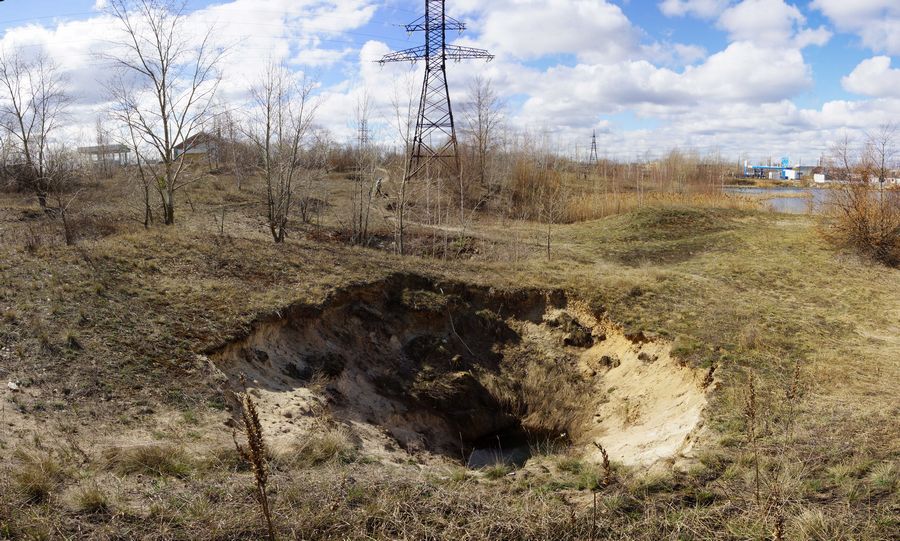Традиционно после совещания состоялась научная экскурсия по карстовым объектам – в этом году на участки в Нижегородской области, где регулярно появляются новые провалы и (или) происходит обновление старых воронок (рис. 1), уделяя особое внимание крупным карстовым формам (рис. 2, 3, 4).