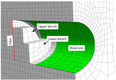 Рис. 6. Численное моделирование последовательности выемки грунта в забое тоннеля Параисо [1]